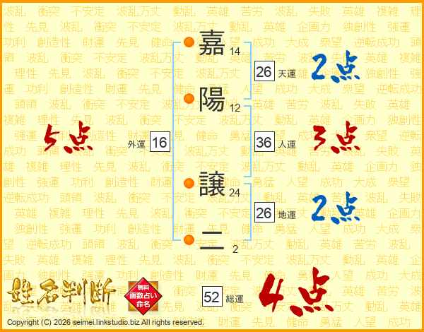 嘉陽譲二さんの総運は52画の4点!