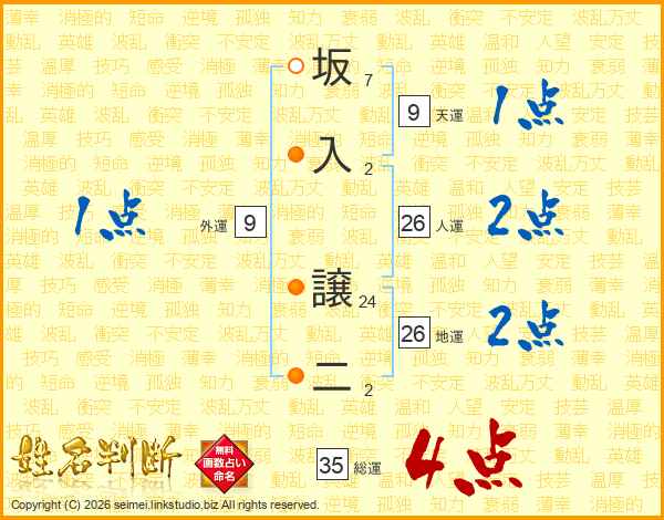 坂入譲二さんの総運は35画の4点!