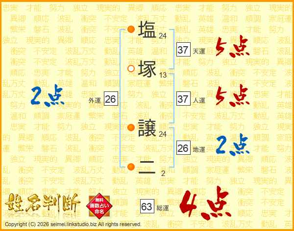 塩塚譲二さんの総運は63画の4点!
