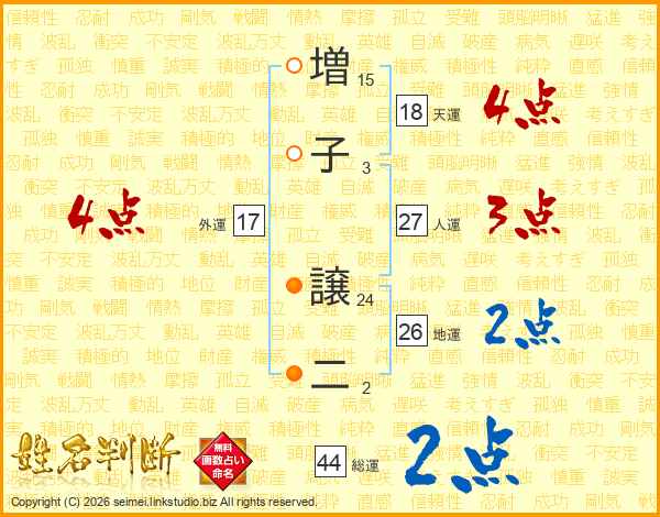 増(15画)子(3画) 譲(24画)二(2画)