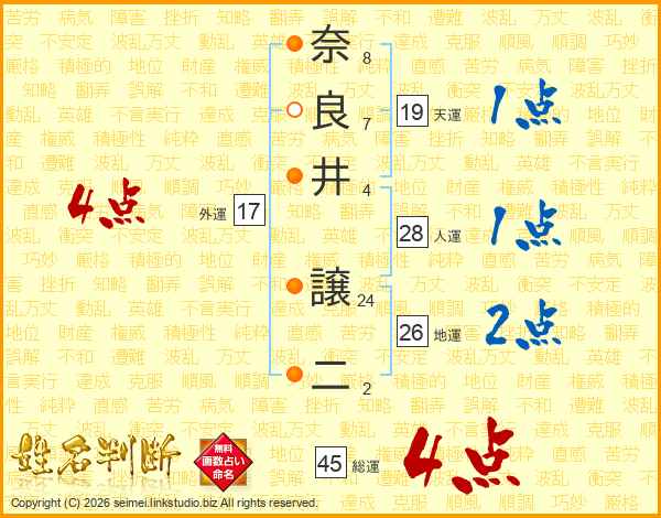 奈(8画)良(7画)井(4画) 譲(24画)二(2画)