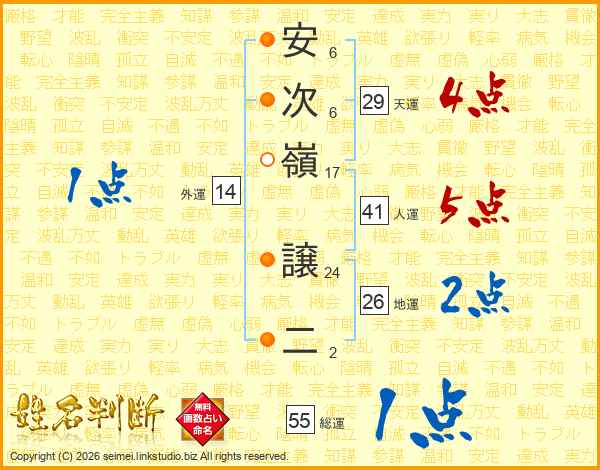 安次嶺譲二さんの人運は41画の5点!