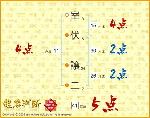 室伏譲二さんの総運は41画の5点!