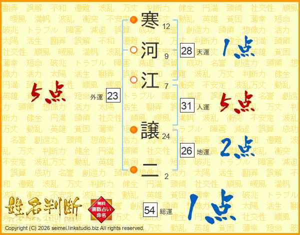 寒(12画)河(9画)江(7画) 譲(24画)二(2画)
