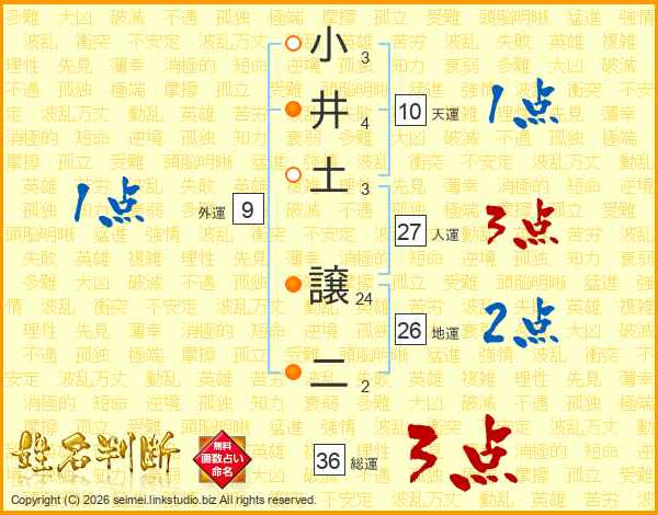 小井土譲二さんの人運は27画の3点!