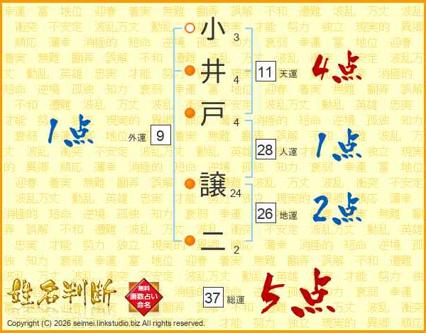 小井戸譲二さんの総運は37画の5点!