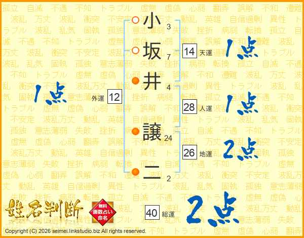小坂井譲二さんの総運は40画の2点!