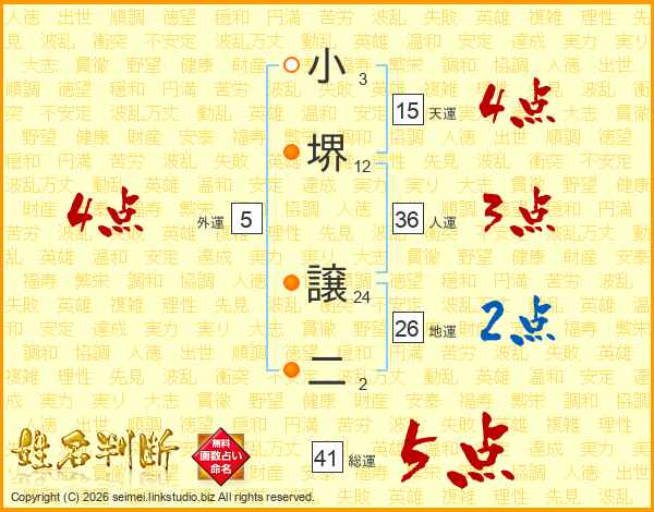 小堺譲二さんの総運は41画の5点!