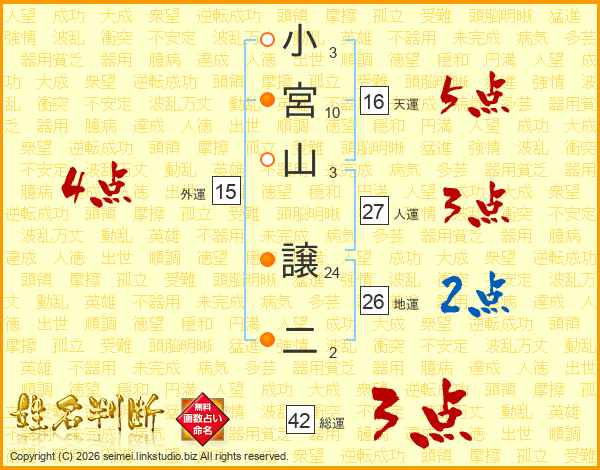 小宮山譲二さんの総運は42画の3点!