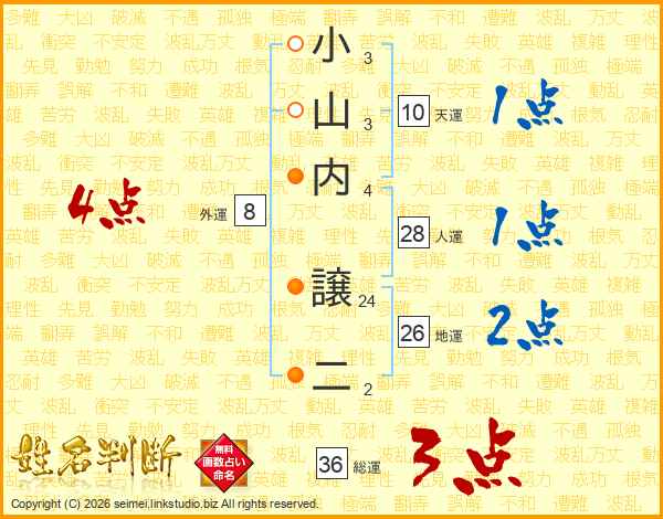 小山内譲二さんの総運は36画の3点!