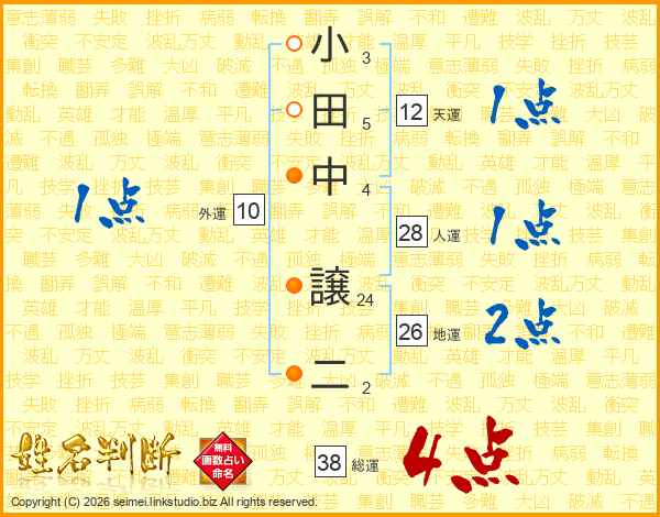 小(3画)田(5画)中(4画) 譲(24画)二(2画)
