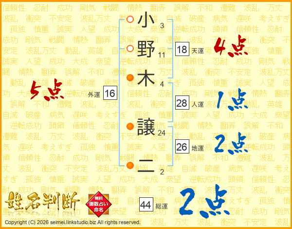 小(3画)野(11画)木(4画) 譲(24画)二(2画)
