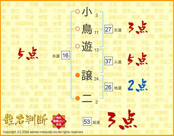 小鳥遊譲二さんの総運は53画の3点!