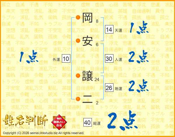 岡安譲二さんの総運は40画の2点!