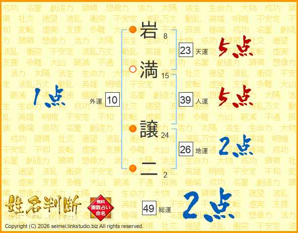 岩満譲二さんの人運は39画の5点!