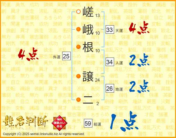 嵯峨根譲二さんの総運は59画の1点!