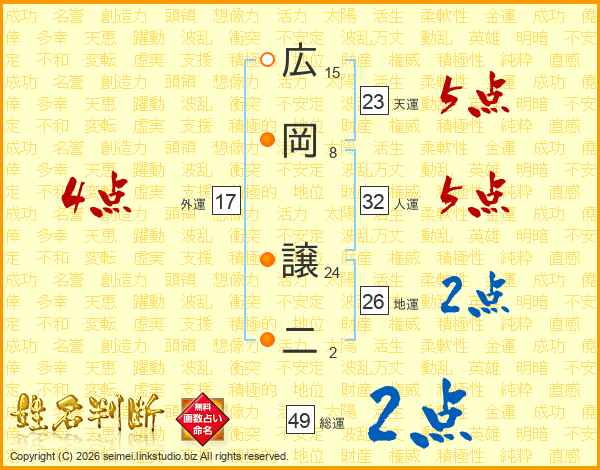 広岡譲二さんの総運は49画の2点!