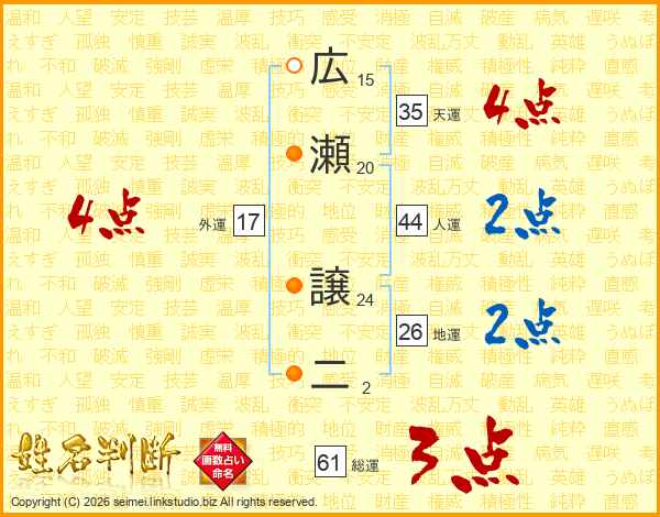 広瀬譲二さんの地運は26画の2点!