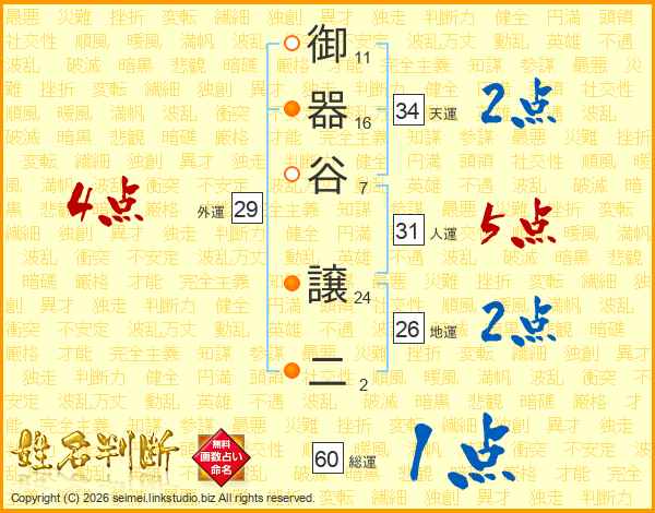 御器谷譲二さんの地運は26画の2点!