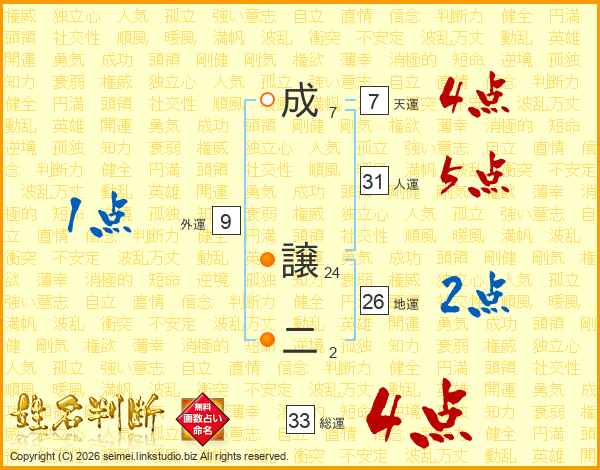 成譲二さんの総運は33画の4点!