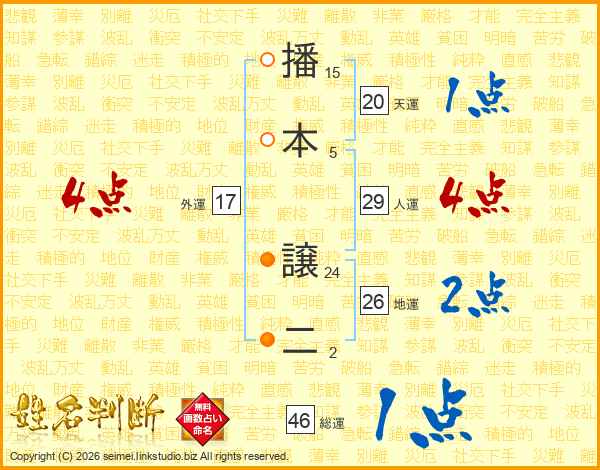 播本譲二さんの地運は26画の2点!