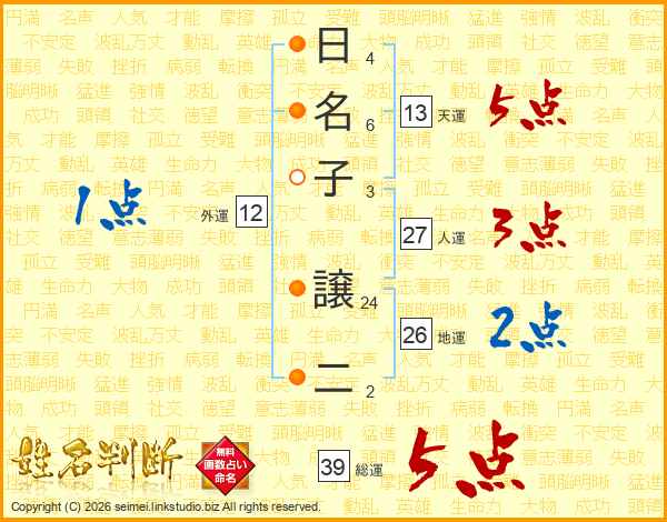 日(4画)名(6画)子(3画) 譲(24画)二(2画)