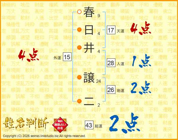 春日井譲二さんの天運は17画の4点!