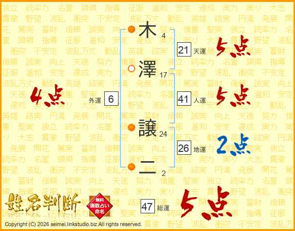 木澤譲二さんの総運は47画の5点!