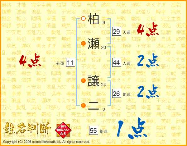 柏(9画)瀬(20画) 譲(24画)二(2画)