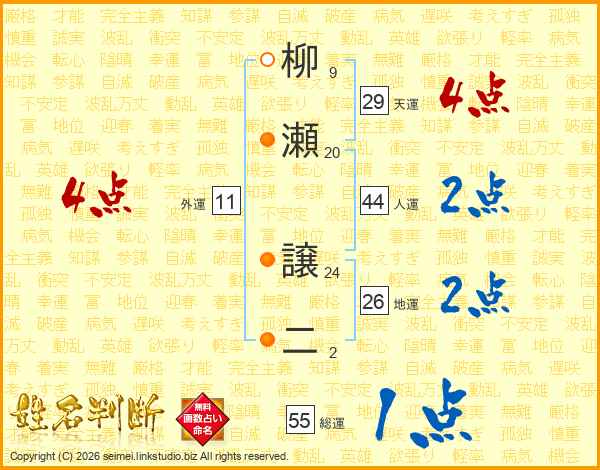 柳瀬譲二さんの人運は44画の2点!
