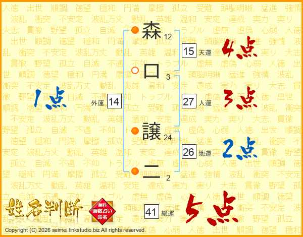 森口譲二さんの総運は41画の5点!