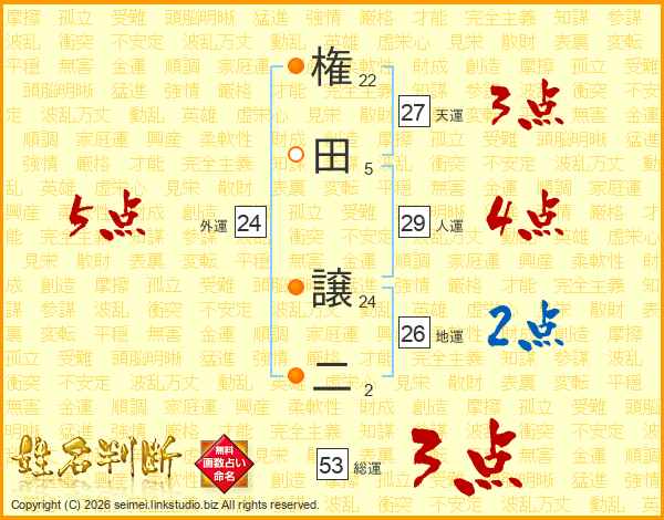 権田譲二さんの総運は53画の3点!