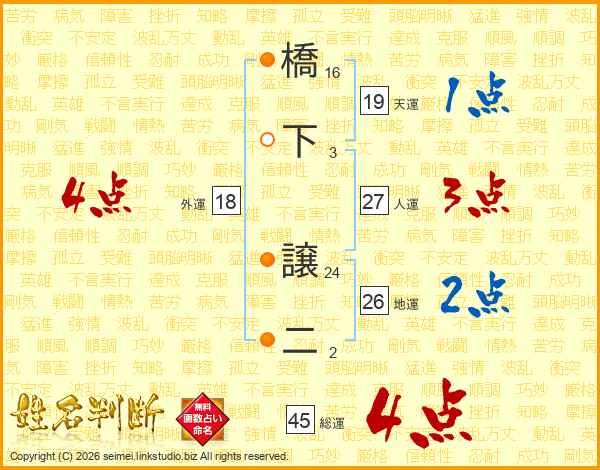橋下譲二さんの総運は45画の4点!