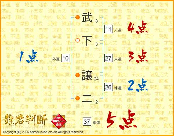 武下譲二さんの総運は37画の5点!