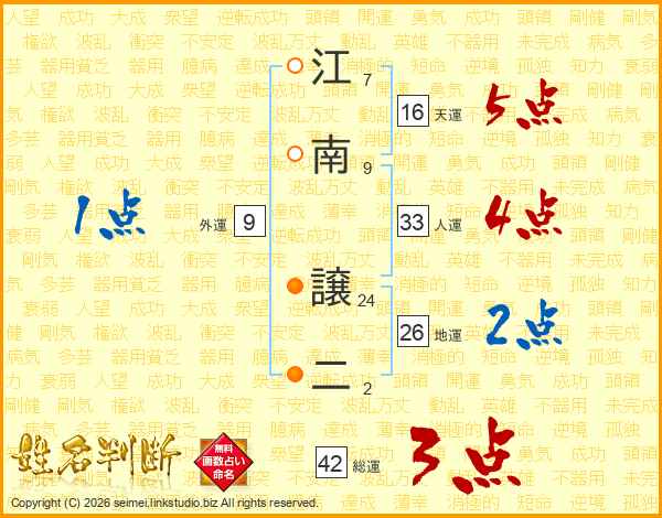江南譲二さんの総運は42画の3点!