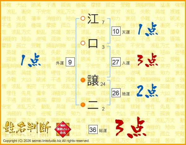 江口譲二さんの総運は36画の3点!