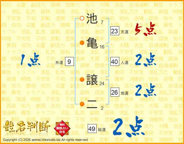 池亀譲二さんの総運は49画の2点!