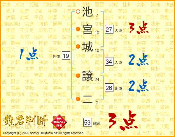 池宮城譲二さんの天運は27画の3点!