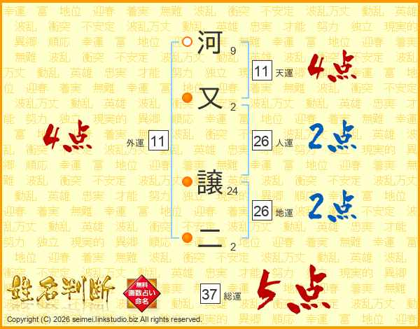 河又譲二さんの総運は37画の5点!