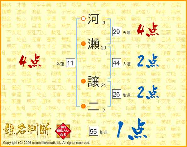 河瀬譲二さんの人運は44画の2点!