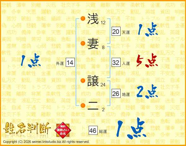 浅妻譲二さんの総運は46画の1点!