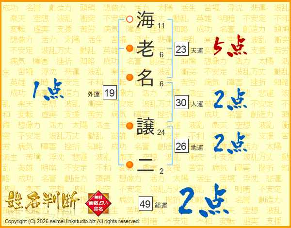 海(11画)老(6画)名(6画) 譲(24画)二(2画)