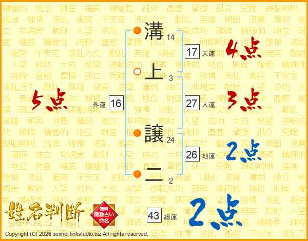 溝上譲二さんの総運は43画の2点!