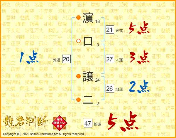 濵口譲二さんの総運は47画の5点!
