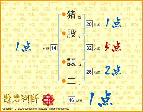 猪股譲二さんの総運は46画の1点!