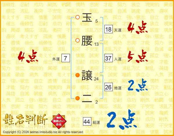 玉腰譲二さんの総運は44画の2点!