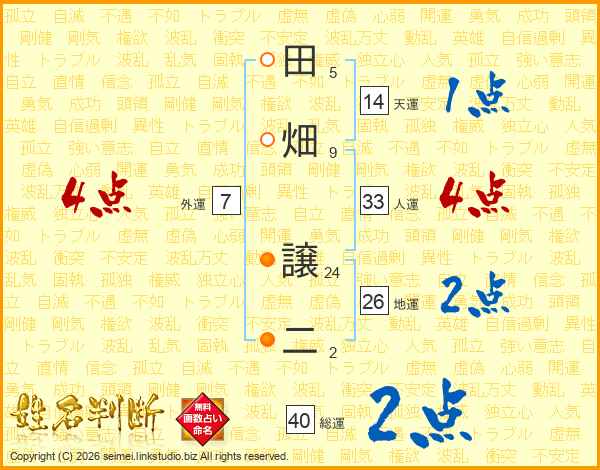 田畑譲二さんの総運は40画の2点!