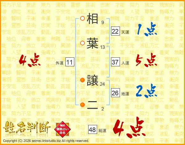 相葉譲二さんの総運は48画の4点!