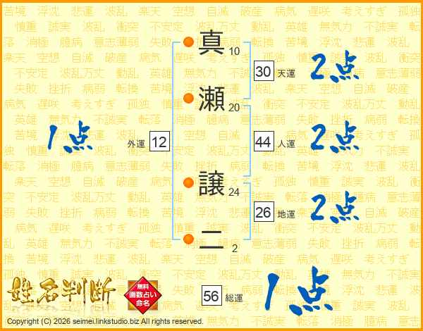 真瀬譲二さんの総運は56画の1点!