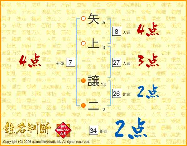 矢上譲二さんの総運は34画の2点!